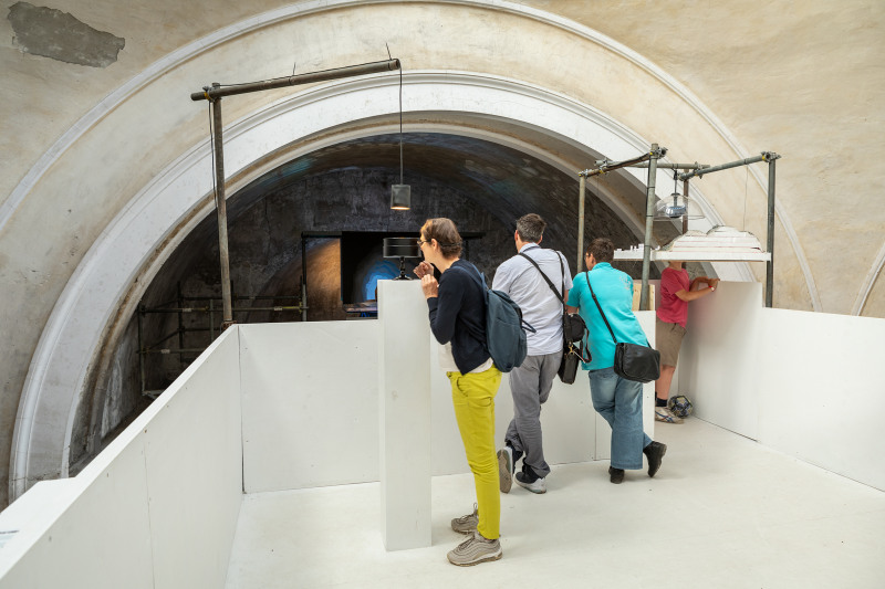 Ein Atlas ist ein Bilderalbum der Welt. Der Atlas zu Modell und Ruine ist begehbar und wurde in die Kuppel des Mausoleums im Georgium gebaut. Die Ansammlung von „Sehmaschinen“ und „Bilderfahrzeugen“ erzählt aus heutiger Sicht verschiedene Geschichten dessen, was wir Moderne und Gegenwart nennen. Dabei bedient sich die Inszenierung eines medienhistorischen Tricks: Mittels älterer analoger Medientechnologien, wie Diorama, Zoetrop oder Rollkartei, werden Funktionsweisen der heutigen, meist digitalen Medien erfahrbar. Wir treten gleichsam einen Schritt zurück, um besser sehen zu können.