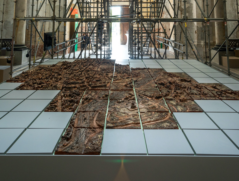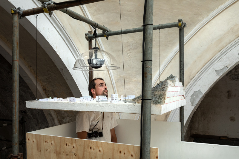 Jan Herzog, Ground Zero - Stunde Null, Künstlerisch plastisches Modell von Dessau nach Kriegsende 1945, Atlas – Im Spiralnebel der Moderne, Installationsansicht, 2019