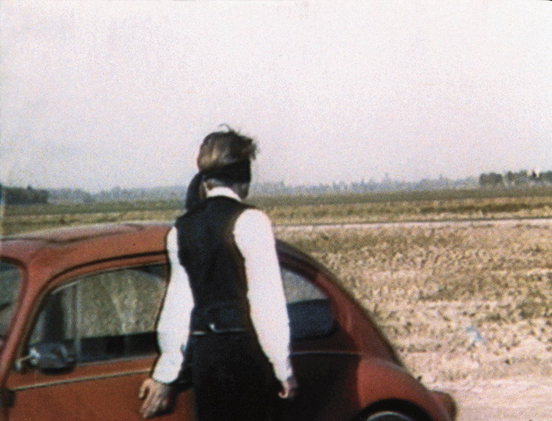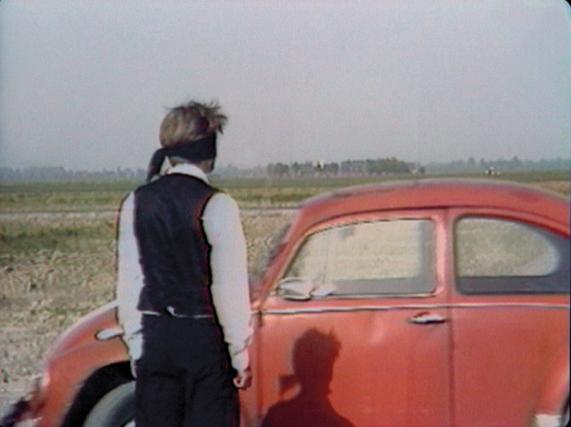 On a small road outside the city, near an electric mast, a Volkswagen Beetle circles around without a driver. Within the same circuit a blindfolded man walks in the in opposite direction from the car. From time to time he narrowly misses the mechanically-driven vehicle. There is never an actual collision, and he doesn't get run over. In the distance a black parked car can sometimes be detected.