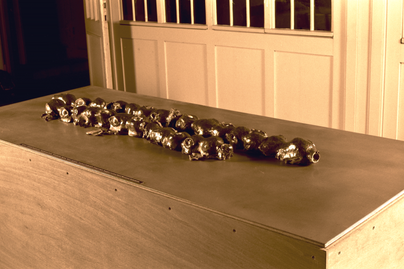Carmen Mörsch (D), Alles wird gut, installation, 4 wooden chests, 175 x 75 x 80 cm each, 4 objects, various materials, 1998