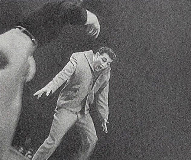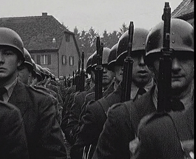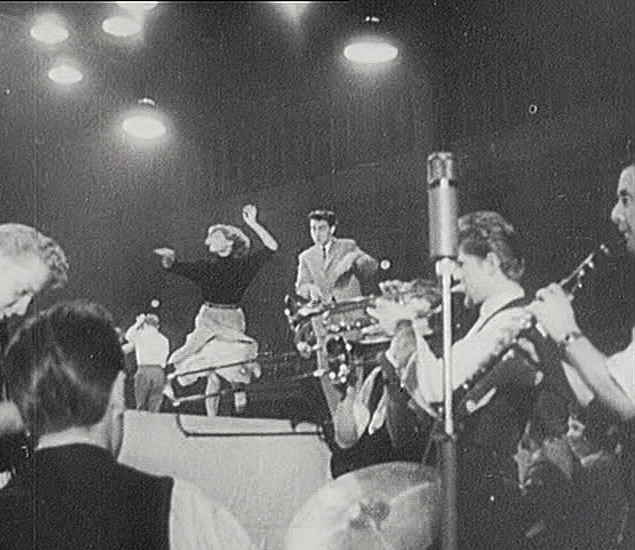 Jazz was quickly accepted in the GDR as the music of the oppressed. Rock’n’Roll, on the other hand, was fiercely condemned for many years as ‘St. Vitus’ Dance’ – also in the Federal German Republic, by the way (2). Its explosive rebellious energy not only electrified the oppressed in distant America but also youth in the GDR, and was therefore an obvious threat. Whilst the first version of Augenzeuge (1958) develops an adventurous logic between the two banes of society, Rock’n’Roll and military service, the second version from 1959 presents a homemade creation – the Lipsi Nr. 1 – designed to put an end to odious wriggling. Yet, as later newsreels had to admit, this was a somewhat “tired” dance.