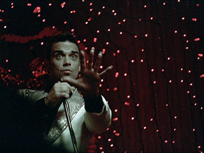 Here is Robbie Williams as he has never been seen before – as an exalted drag queen talking about “her” multiple personalities in an interview and presenting himself on stage as a testosterone-emitting entertainer.