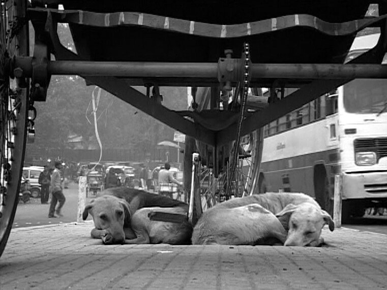 "To believe that cows like most to eat grass, perhaps also means to believe that stray dogs prefer to be shot." At least this is what some say. Others say: "Hitler was a vegetarian too." Or: "What they call Nirvana, is what we call depression." Without any doubt a scenic nature film. It's all about discipline and compassion, about longing and disgust, and how much time is left for things like this anyway. Clips of inofficial excerpts of studio-theatre kind Indian-European monologues tossed amongst splendid exteriors. Everything here is played off the cushion and dealt with on the back of completely innocent animals.