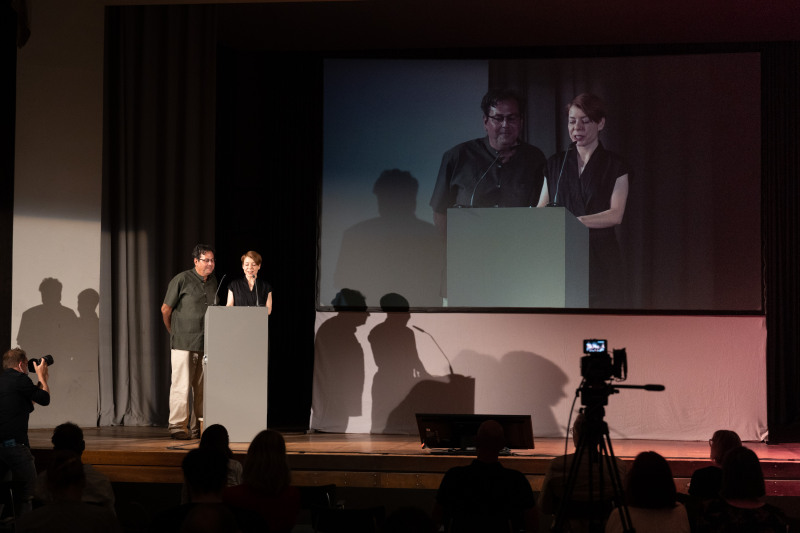 Sandra Naumann (Leiterin des Konferenz- und Diskursprogrammes new world dis/order) und Peter Zorn (Festivalleiter und EMAP-Manager)