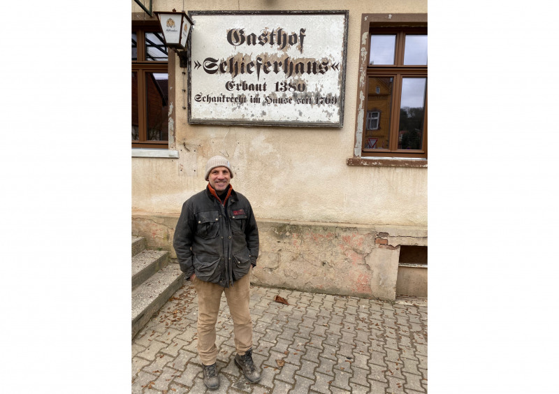 In diesem Zusammenhang kommen wir schließlich auch zu Klaus Feicks neuestem Projekt: die Sanierung des „Schieferhauses“ in Wippra. Dieser traditionsreiche Gasthof, im Zentrum des Ortes, blickt auf eine Geschichte zurück, die bis ins 14. Jahrhundert reicht. Der Wiederaufbau dieses, vom Verfall bedrohten, sozialen Treffpunkts brachte ihm nicht nur viele Sympathien, sondern auch die tatkräftige Unterstützung der Wippraer und Wippraerinnen ein. Zumal die zahlreichen bereits stattgefundenen Veranstaltungen, wie Kino, Konzerte und ein Adventskalender das kulturelle Leben bereits jetzt bereichern und den gesellschaftlichen Zusammenhalt stärken.