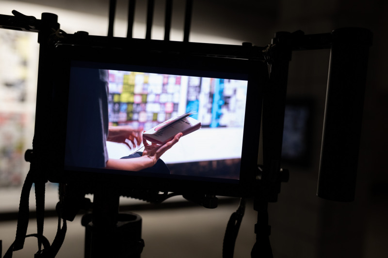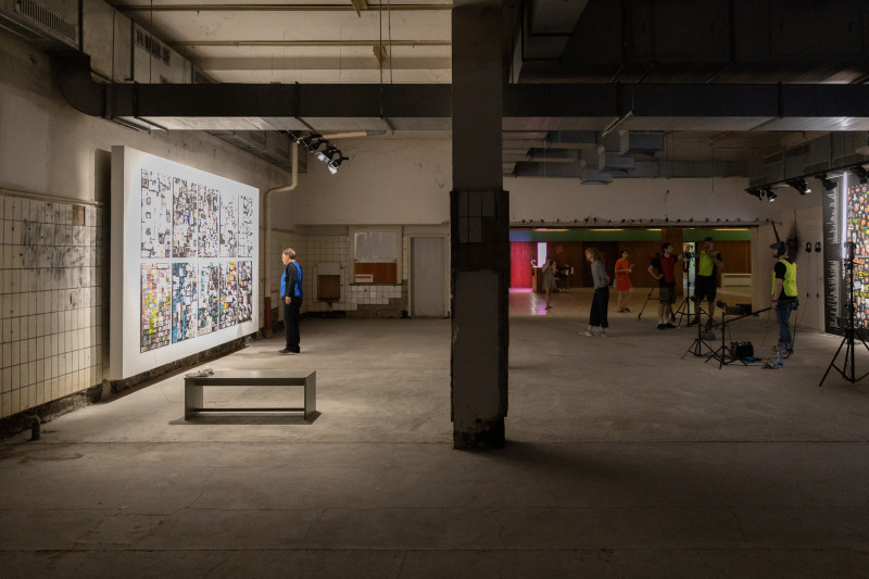 Dokumentation der Arbeit #MEMEMANIFESTO von Clusterduck im Festivalgebäude in Halle (Saale)