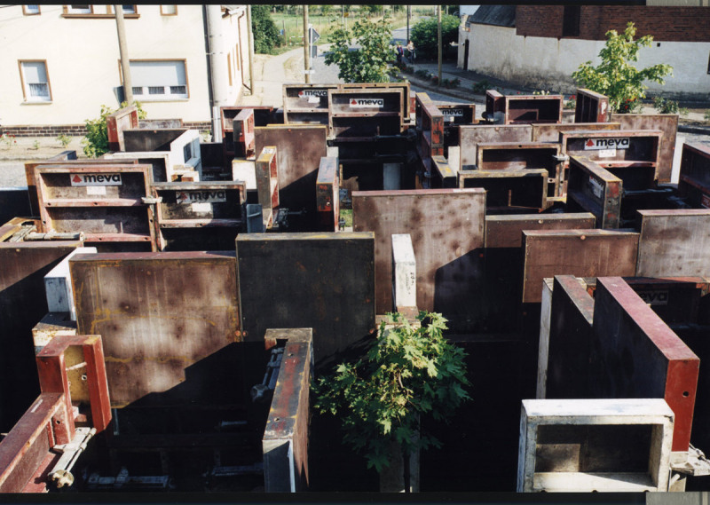 Die Frage, welche gesellschaftliche Situation sich mit welcher Nutzung von Gebäuden und damit auch welchen Arbeitsformen verbindet, kam in der entstandenen Arbeit auf körperlich wahrnehmbare Weise zur Sprache. Die Arbeit versetzte die Komplexität vergangener Strukturen und Nutzungen des Gebäudes in abstrakter Form und stellte sie als begehbare labyrinthische temporäre Architektur in den Außenraum.
