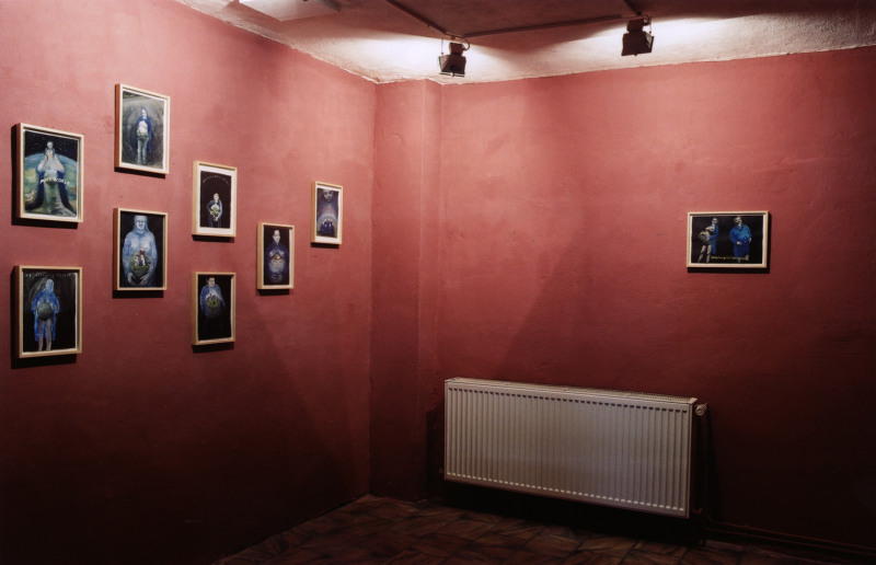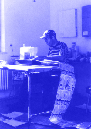 Unsere Vorstellung von Arbeit ist nicht nur durch die Idee der Erwerbsarbeit dominiert, sondern konzentriert sich auch auf eine an starre, formalisierte Zeitabläufe gebundene Tätigkeit innerhalb einer Hierarchie. Nicht nur, aber auch aus diesem Grunde findet die Arbeit im Haushalt und der Betreuung von Kindern wenig Anerkennung und erscheint eine Einbindung von erziehenden Müttern in andere Arbeitsfelder als unmöglich. Frauke Gerhard hat ihre eigene Lebensrealität als Ausgangspunkt genommen und ihren Beruf als Künstlerin und Mutter in ein Lebens- und Arbeitsprojekt umgesetzt, in dem sich die Widersprüche der gesellschaftlichen Organisation von Arbeit und Familie überwinden ließen. Sie übernahm die "Patenschaft" für einen heruntergekommenen Spielplatz in ihrer unmittelbaren Kölner Nachbarschaft und initiierte dort das auf "gemeinnütziger, generationsübergreifender Kunst- und Kommunikationspraxis" basierende Projekt CONTAINER STATION (29). Unter Einbeziehung der Nachbarschaft organisierte sie Ausstellungen, Pflanzungen und informelle Möglichkeiten des Austausches und des Gespräches. Die von ihr aufgestellten Container und der Spielplatz dienten als Atelier und Gerätemagazin, Garten und Treffpunkt. Frauke Gerhard's Malerei verdichtet diese Erfahrungen in anderer Form. Angelehnt an Ikonenmalerei malt sie die "Abteilungsleiterin" - ihr alter ego - mit blauem Arbeitsoverall, der an die Stelle des Umhangs der Madonna tritt. In den Bildern wird ihre Vision einer nicht-hierarchischen Arbeitsorganisation sichtbar. Die "Abteilungsleiterin" gebiert immer weitere "Blaumänner", die wiederum Arbeitsanzüge anziehen und so symbolisch Initiative und Arbeitseinsatz übernehmen.
