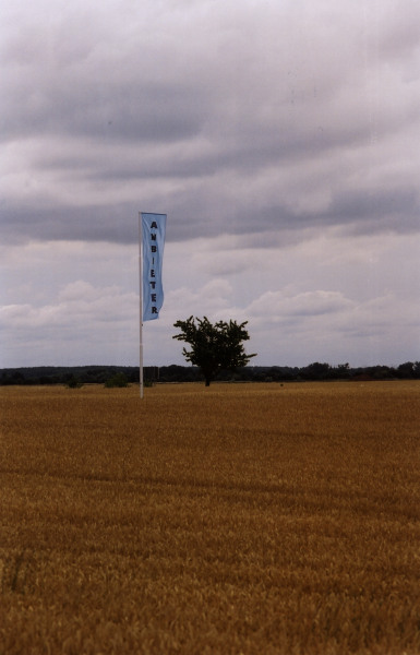 Ute Richter lotet dagegen wiederholt Selbstverständnis und Rolle der KünstlerIn und ihrem Verhältnis zum Publikum ausserhalb des Ausstellungsraumes und der Institution aus. Welchen Raum hat die künstlerische Gestaltung erobert, wenn sie in gesellschaftliche Zusammenhänge und Alltag eingreift? Die einfache Anweisung an SchülerInnen in Frankreich, ihre Schulranzen nicht ungeordnet, sondern nach einem markierten Rastersystem auf dem Schulhof abzulegen (24), stellte diese Frage auf unspektakuläre Art und Weise - und auch die, welcher Art von Ästhetik man jenseits des Ausstellungsraumes antrifft und wie man dieser begegnet. Die Fahne für Werkleitz thematisiert sowohl die Kolonialisierung des öffentlichen Raumes der Neuen Bundesländer durch Werbemaßnahmen als auch die scheinbar zunehmende Notwendigkeit von sichtbarer Präsenz durch Werbung und Marketingmaßnahmen. Dies betrifft die Kultur ebenso wie privatwirtschaftliche Firmen, die durch den Wettbewerb um Aufmerksamkeit verschiedenste Werbestrategien suchen.