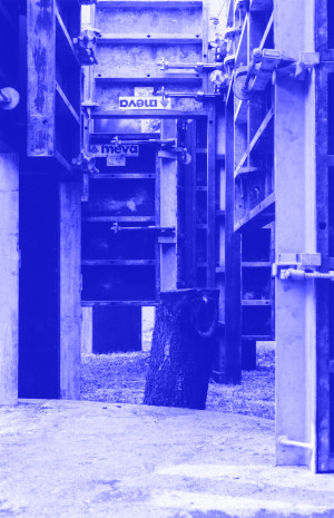 Ebenso wie sich an gebauter Architektur ablesen lässt wie Menschen leben, arbeiten und sich im Alltag organisieren, geben die in den Bauten verarbeiteten Materialien Auskunft über eine Befindlichkeit der Gesellschaft und ihre Prioritäten (18). Die Erkenntnis, dass Räume keine neutralen Orte sind, sondern vielmehr Träger komplexer gesellschaftlicher Strukturen, führt Franka Hörnschemeyer seit Beginn ihrer künstlerischen Arbeit zu der Verarbeitung von Bau- und Konstruktionsmaterialien wie Gipskartonplatten und Schal-Elemente, die als Norm-Einheiten für die Bedürfnisse schneller, rationeller Bauweisen entwickelt wurden. Aus diesen Materialien entstehen Bauten, in die die grundsätzlichen Maße von Grundrissen, gegenwärtige und vergangene Funktionen und Bewegung im Raum als Datensätze und Erzählung einfließen. Als abstrakte Konstruktion körperlicher Wahrnehmung von Raum stehen sie der Oberfläche der untersuchten Architekturen in eigener roher Qualität gegenüber (19).