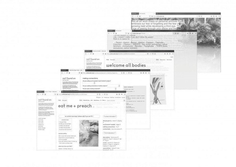 Außerdem findet unter dem Titel Not Found On ein geschlossener Online-Workshop der Künstlerin Aay Liparoto zu dem von ihr ins Leben gerufenen nicht-öffentlichen Wiki von und für feministische queere Körper statt.