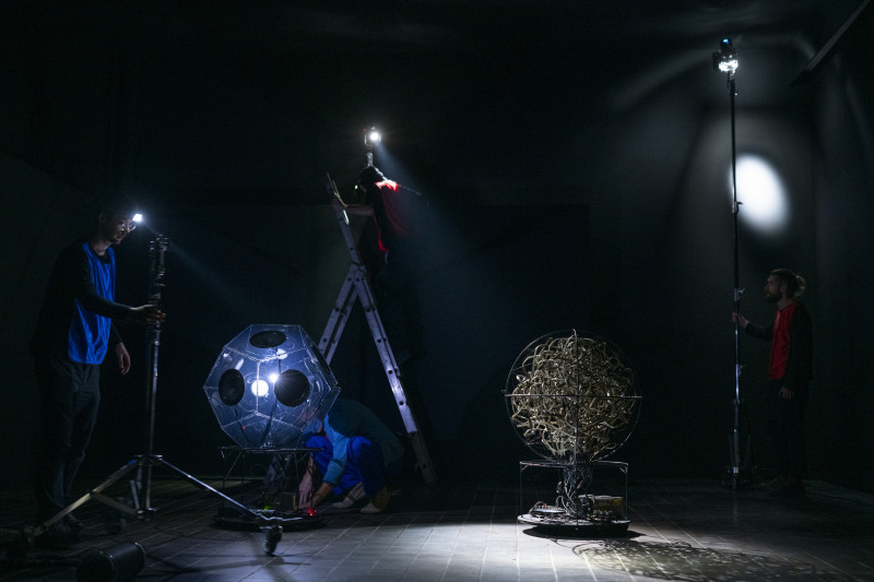 Dokumentation der Arbeit Faster Than Light von Kentaro Kumanomido & Teaque Owen im Festivalgebäude in Halle (Saale)