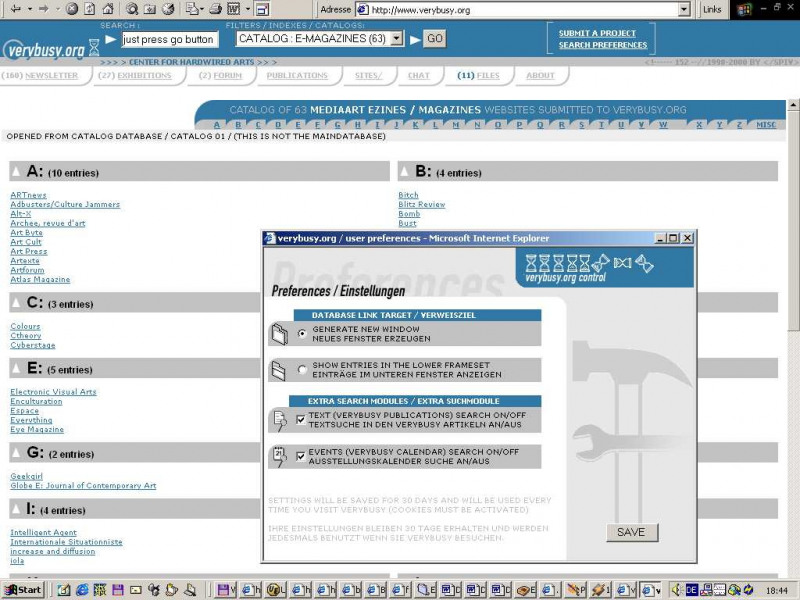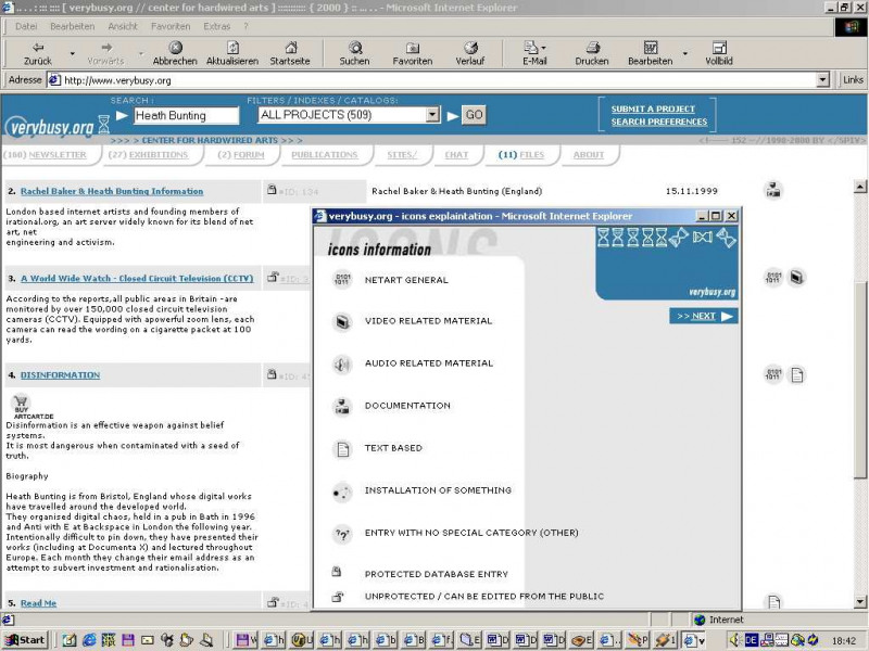 Verybusy.org ist als Katalysator und offene Bibliothek einer seit wenigen Jahren bestehenden, aber unzureichend erschlossenen Netzkunstszene konzipiert. Im Gegensatz zu früheren Versuchen offener Plattformen, wie BBS (Bulletin Board Systems), die nun zehn Jahre zurückliegen – profitiert Verybusy.org von einer wesentlich reiferen Infrastruktur. Verybusy.org ist somit ein Rückgriff in die späten 80er Jahre, gleichzeitig soll der Server aber den Bedürfnissen des 21. Jahrhunderts gerecht werden und die Aufgaben einer modernen Suchmaschine für Netzkunst erfüllen. Der Brückenschlag ist dabei, dass Verybusy.org nicht Contentprovider sondern Contextprovider ist.