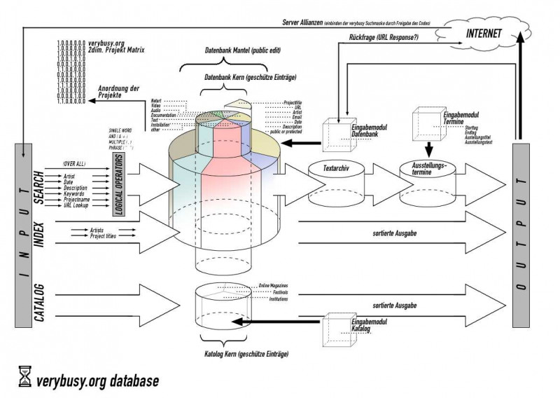 Verybusy.org versteht sich als ein Container, welcher durch die dezentrale Eingabe der Netzkunstszene beständig erweitert und bereichert wird. Um so weniger die Plattform einen Anspruch auf Vollständigkeit legen kann, um so mehr richtet sich die Aufmerksamkeit der Aktualität und Qualität der Datenbankeinträge. Die Qualität im Einzelnen unterliegt der subjektiven Ansicht des Benutzers, der Einträge in die Datenbank vornimmt. Die ganzheitliche Qualität des gesamten Datenbestandes leitet sich jedoch aus der Gesamtheit der Benutzer ab. Nach Kant definiert sich Objektivität durch Intersubjektivität.